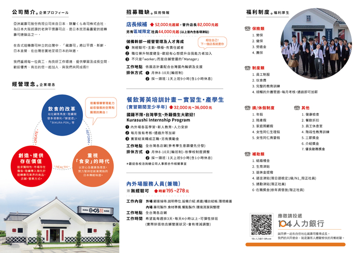 【徵才資訊】亞洲藏壽司股份有限公司 招募 多個職缺(招募截止日2025/12/31)