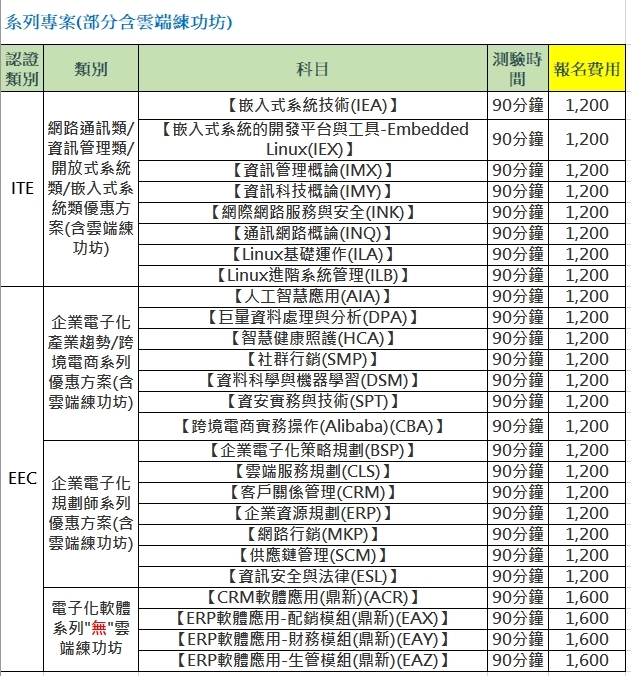 114學年度第2學期ITE、EEC電腦技檢大會考報名相關資訊如下:(報名截止日期:4月30日(星期四)止)