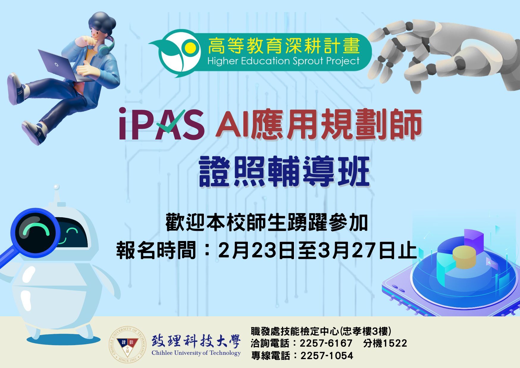 【技能檢定中心】115年4月 iPAS AI應用規劃師 證照輔導班報名開始!!!(2/23公告)