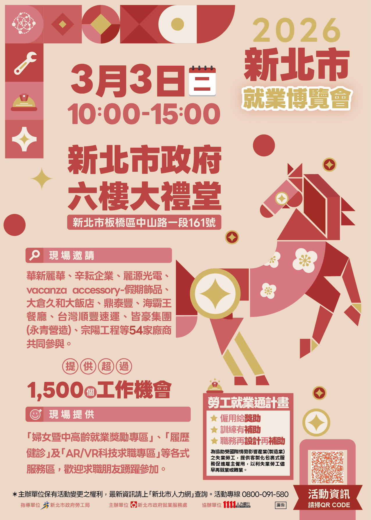 【校友服務中心】新北市就業服務處於115年3月3日(星期二)於新北市政府6樓大禮堂舉辦「2026新北市就業博覽會」,歡迎踴躍參與!